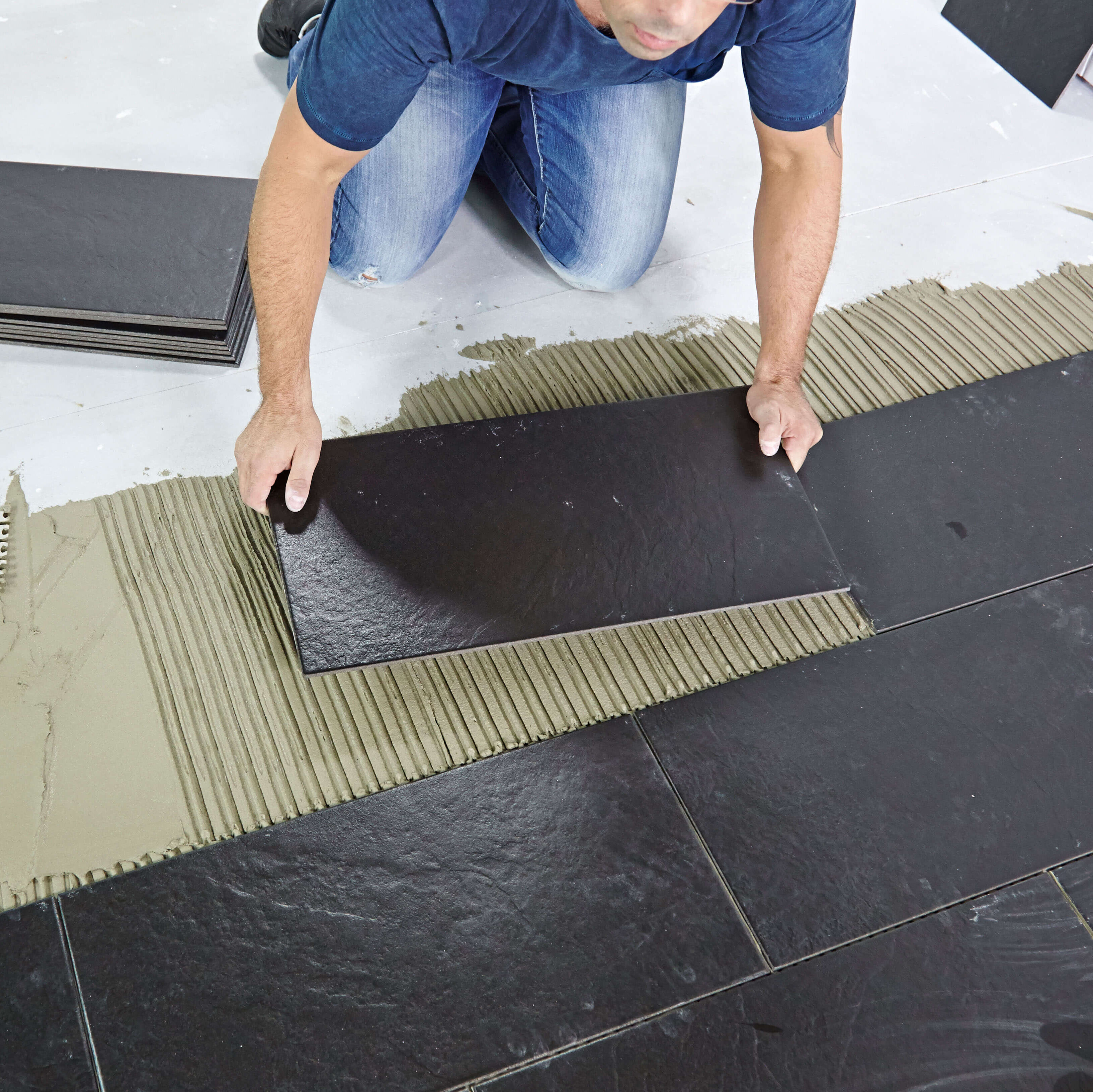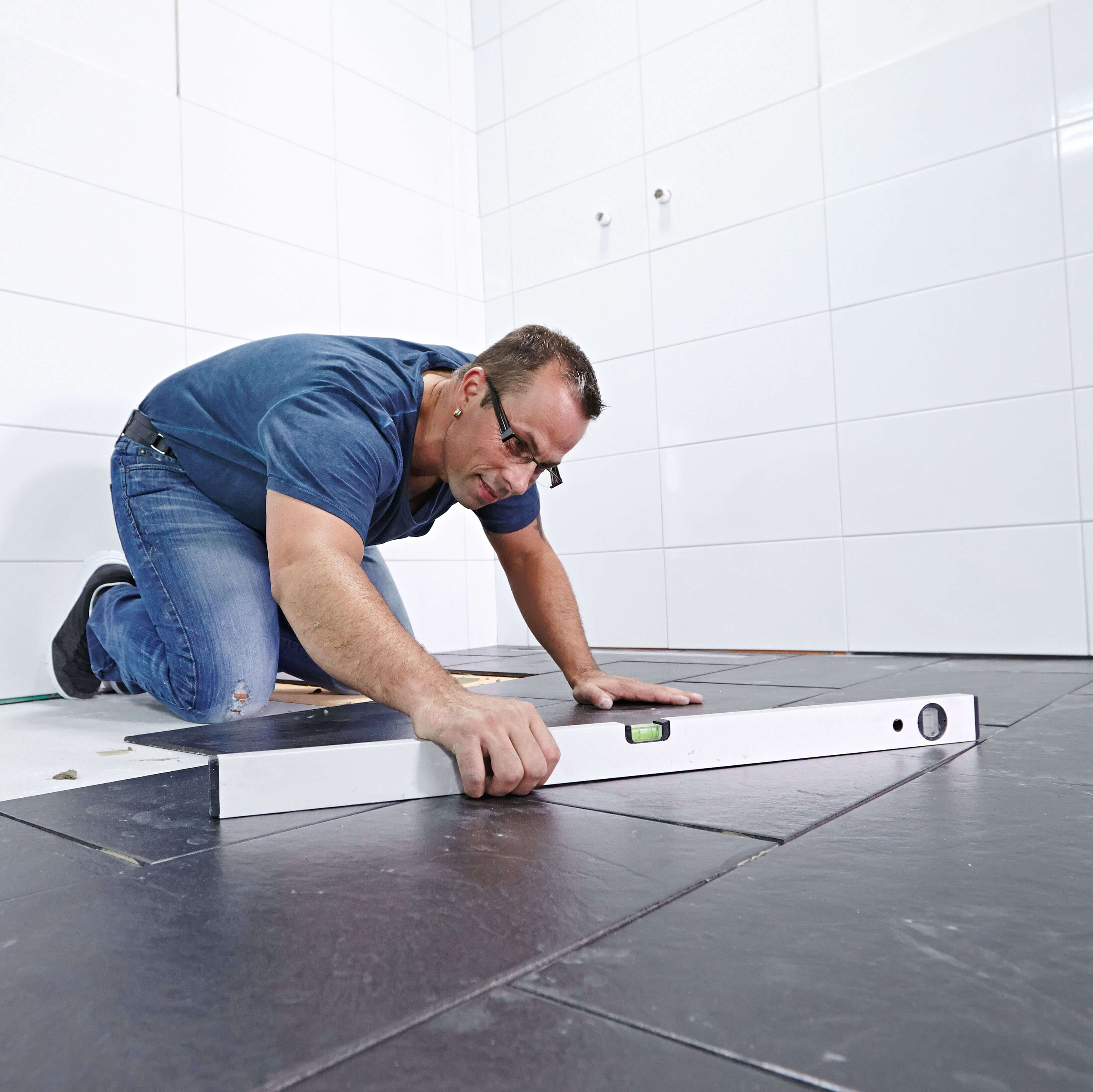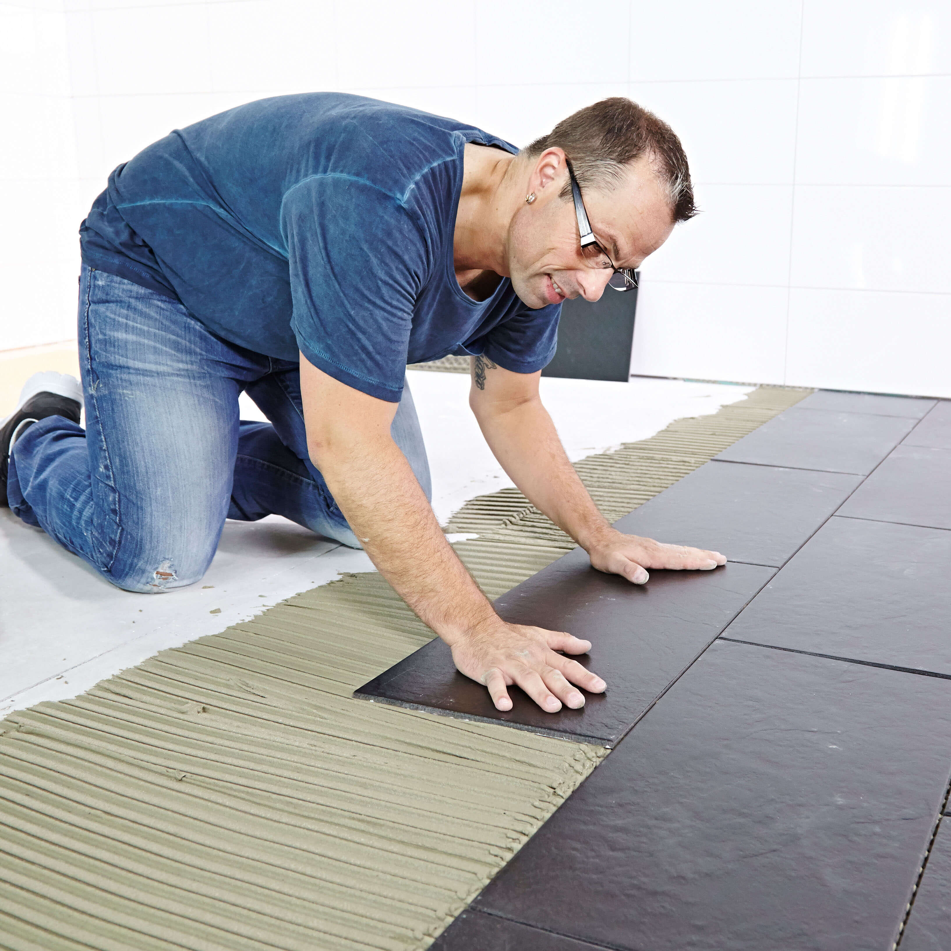 Nachdem ihr alles geplant und vorbereitet habt, könnt ihr mit der Verlegung beginnen. Achtung: Rührt den Kleber erst an, wenn alle anderen Arbeiten abgeschlossen sind! Für jede Fliese gibt es einen passenden Kleber. Welchen ihr am besten nehmen solltet, erfahrt ihr in unserem Handbuch, das ihr unten kostenlos downloaden könnt.
