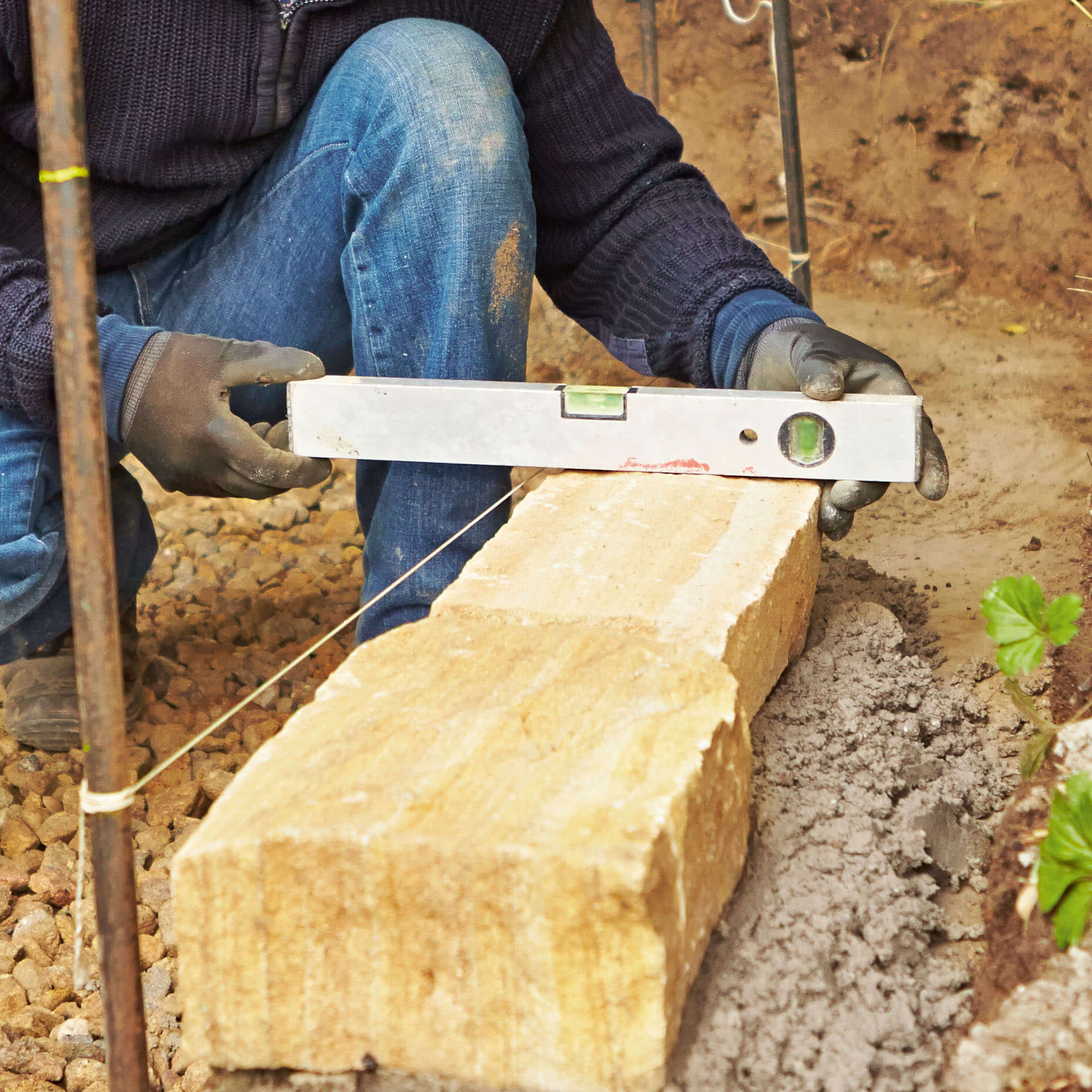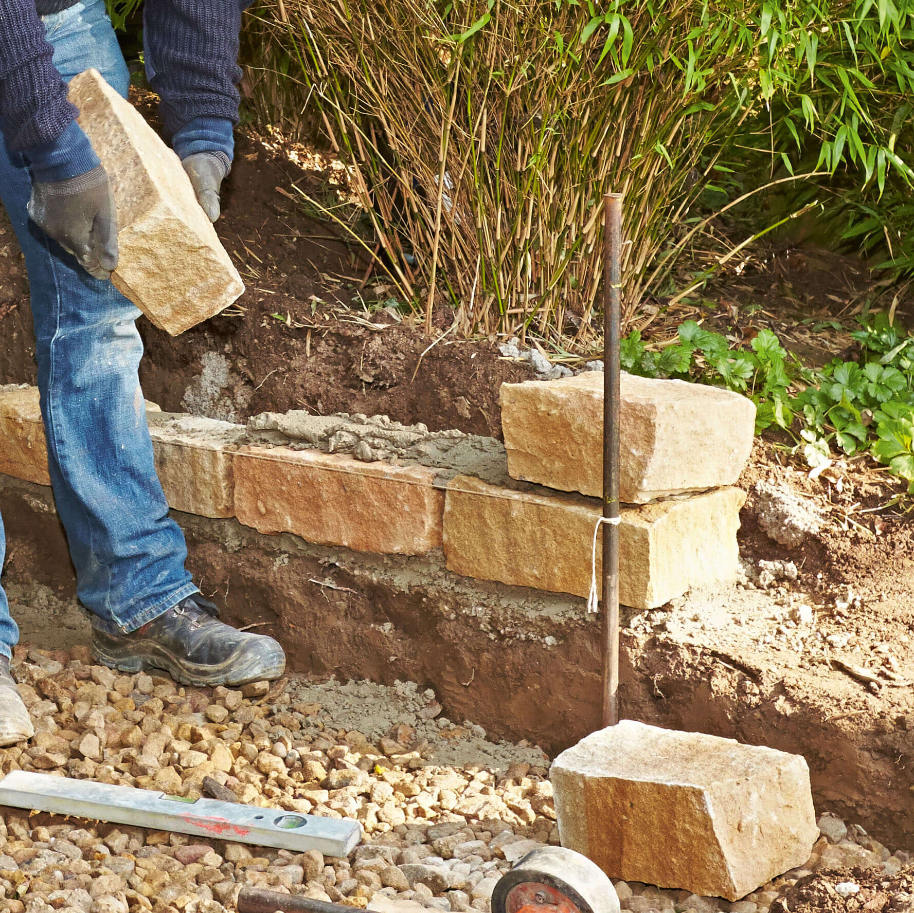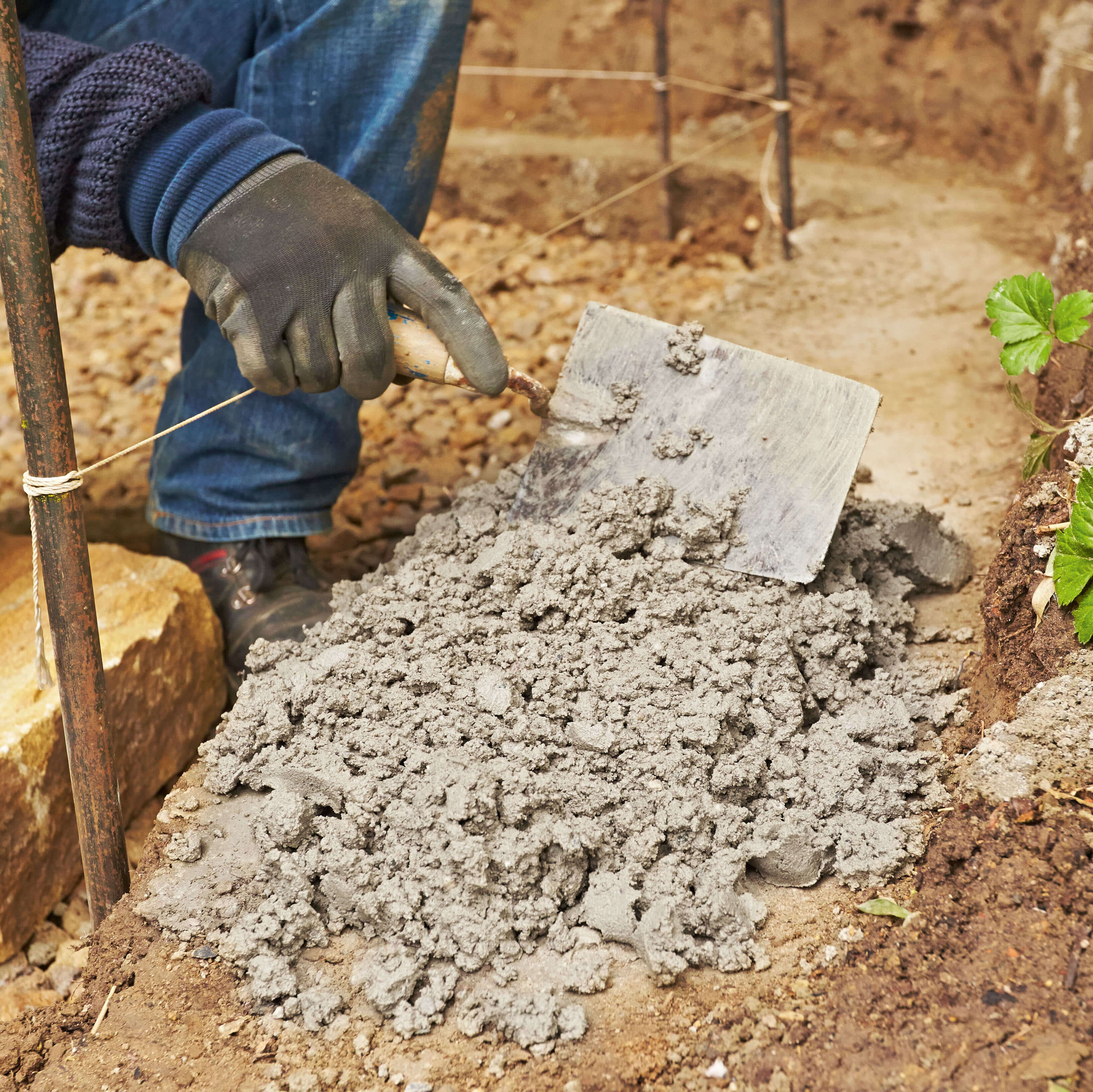 Das Fundament ist nach 28 Tagen vollständig ausgehärtet. Bebaut werden kann es in der Regel nach 2 Tagen. In der Zwischenzeit könnt ihr Steine und Werkzeug bereitlegen. Wenn alle Vorbereitungen abgeschlossen sind, ist es endlich so weit: Ihr könnt den Mörtel mischen und anfangen, eure Mauer zu bauen.