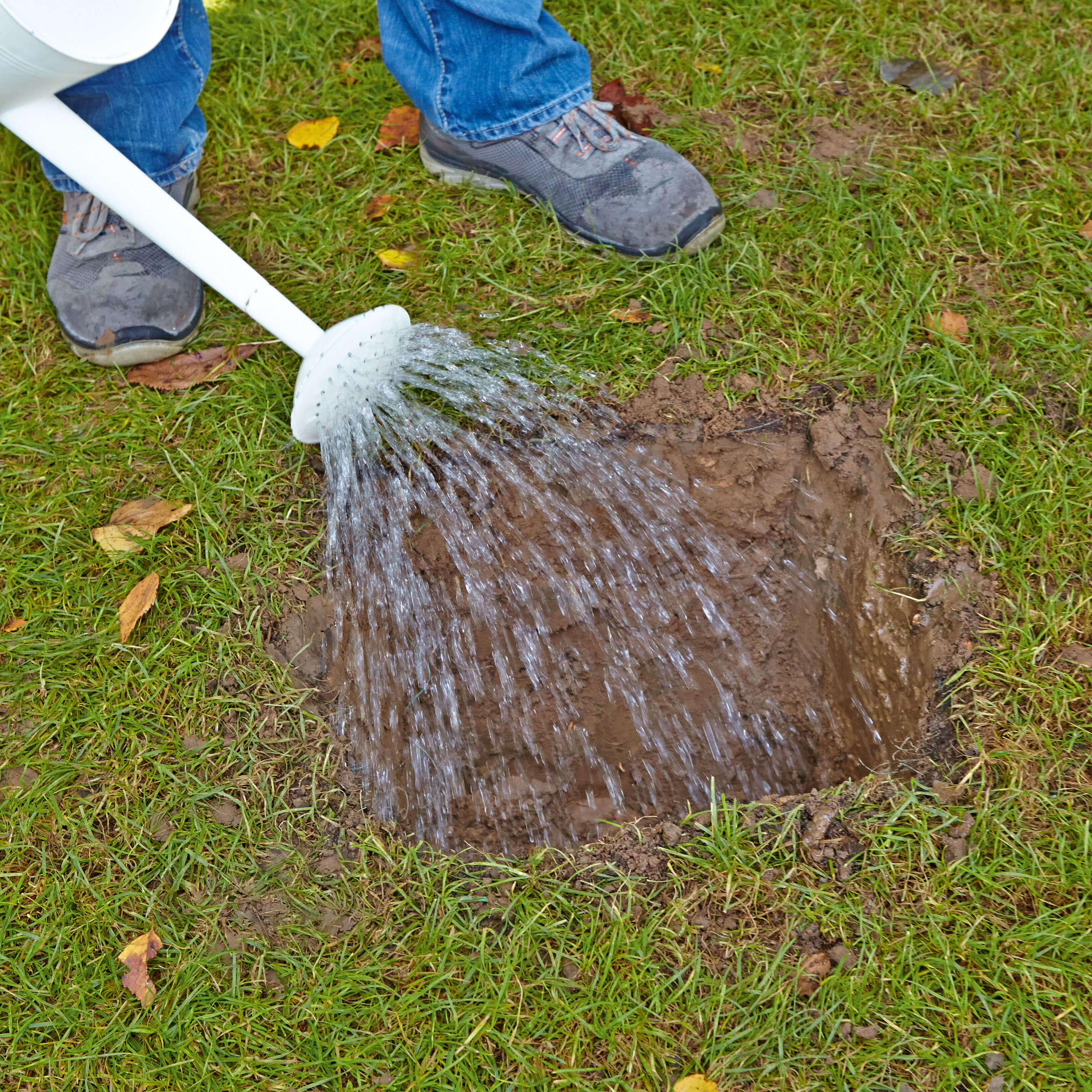 Der mineralische Trockenmörtel wird zunächst in möglichst gleichmäßigen Schichten in ein zuvor ausgehobenes Fundament oder Loch eingefüllt. Mithilfe einer Gießkanne wird er anschließend mit Wasser übergossen. Zeitaufwendiges „Festhalten“ und Fixieren sind dank der schnellen Erhärtung des Baustoffes überflüssig. So verleiht der Ruck-Zuck Beton von quick-mix allen nicht DIN-relevanten Bauteilen im Außen- und Innenbereich dauerhafte Standfestigkeit.